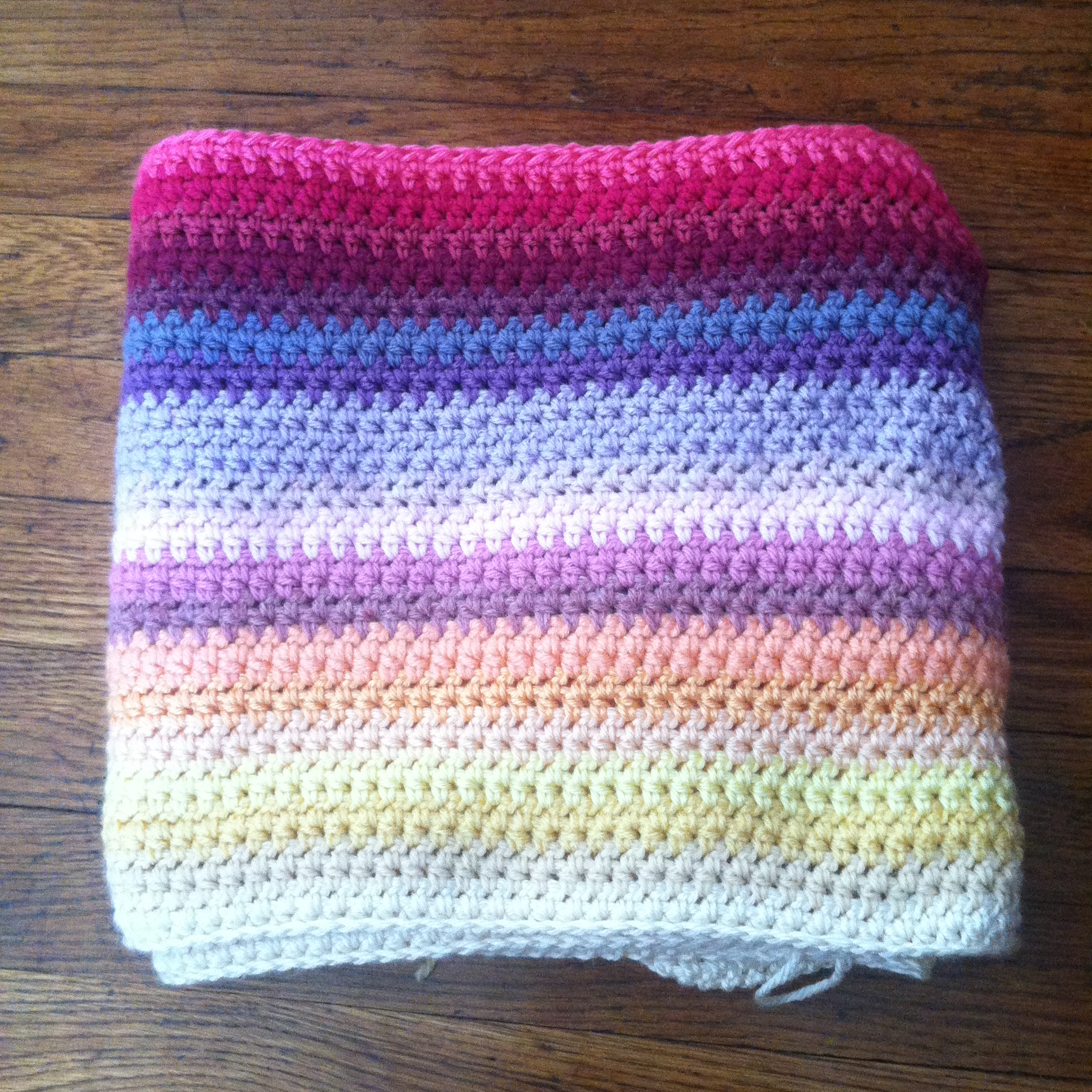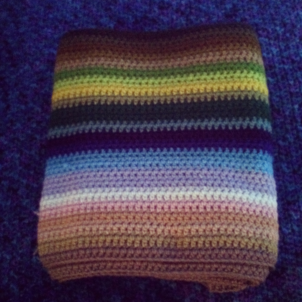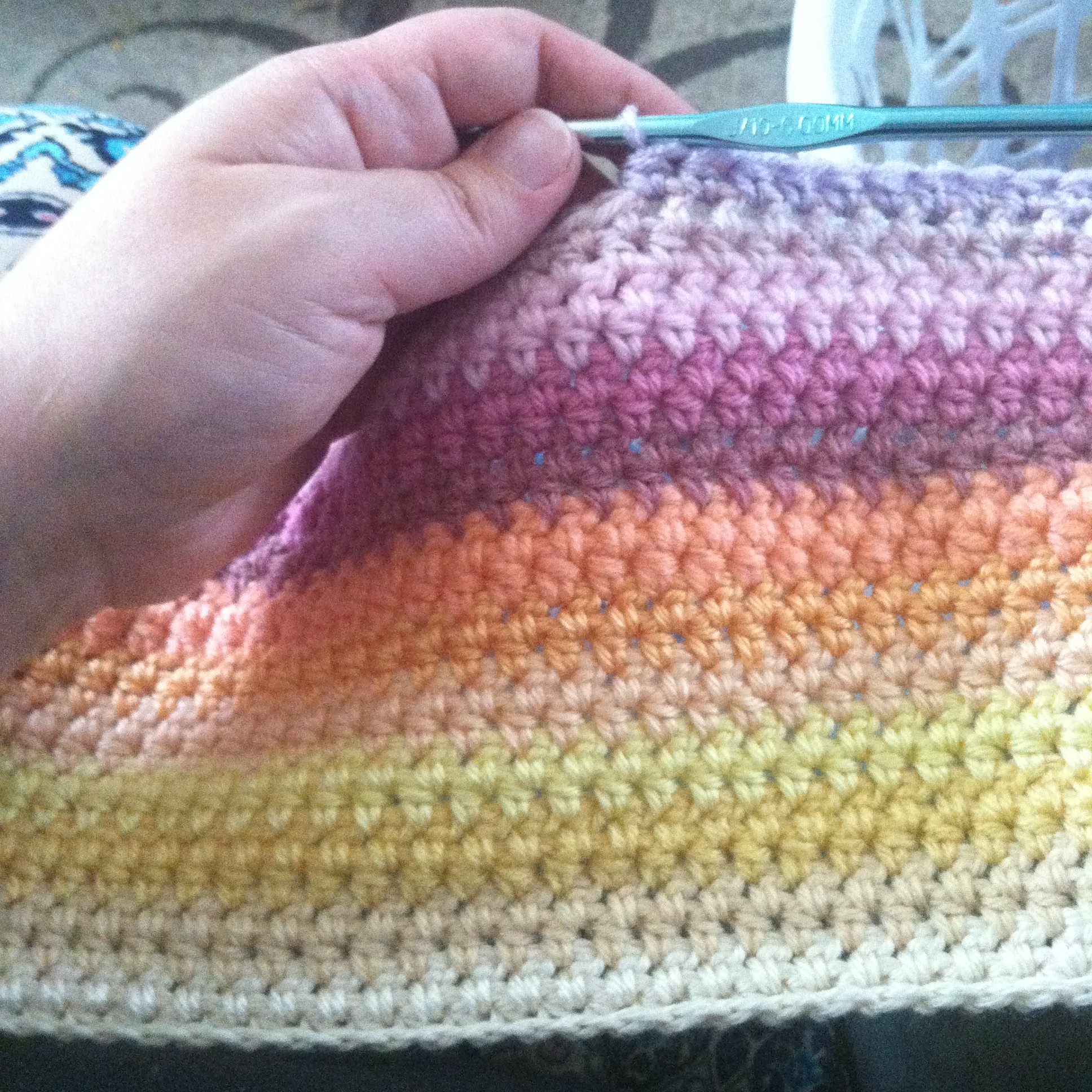 I’ve got a pretty good start on Agnes’ newest blanket. It is a Mexican inspired, multi-hued, crochet blanket in all of her favorite colors.