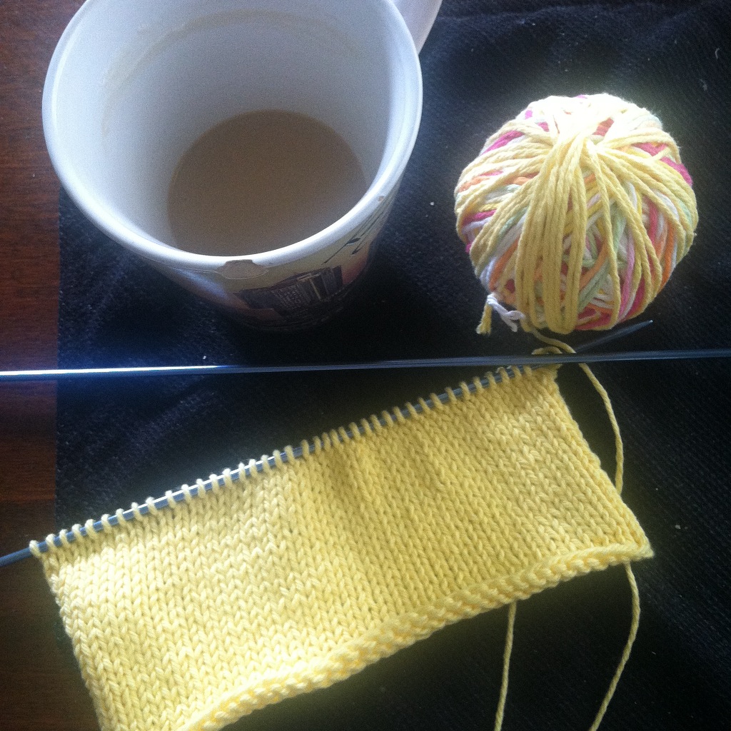 I’m still working on my knitting. I’ve been knitting lots of little dusting cloths, to keep the kids busy, and my knitting needles busy too.