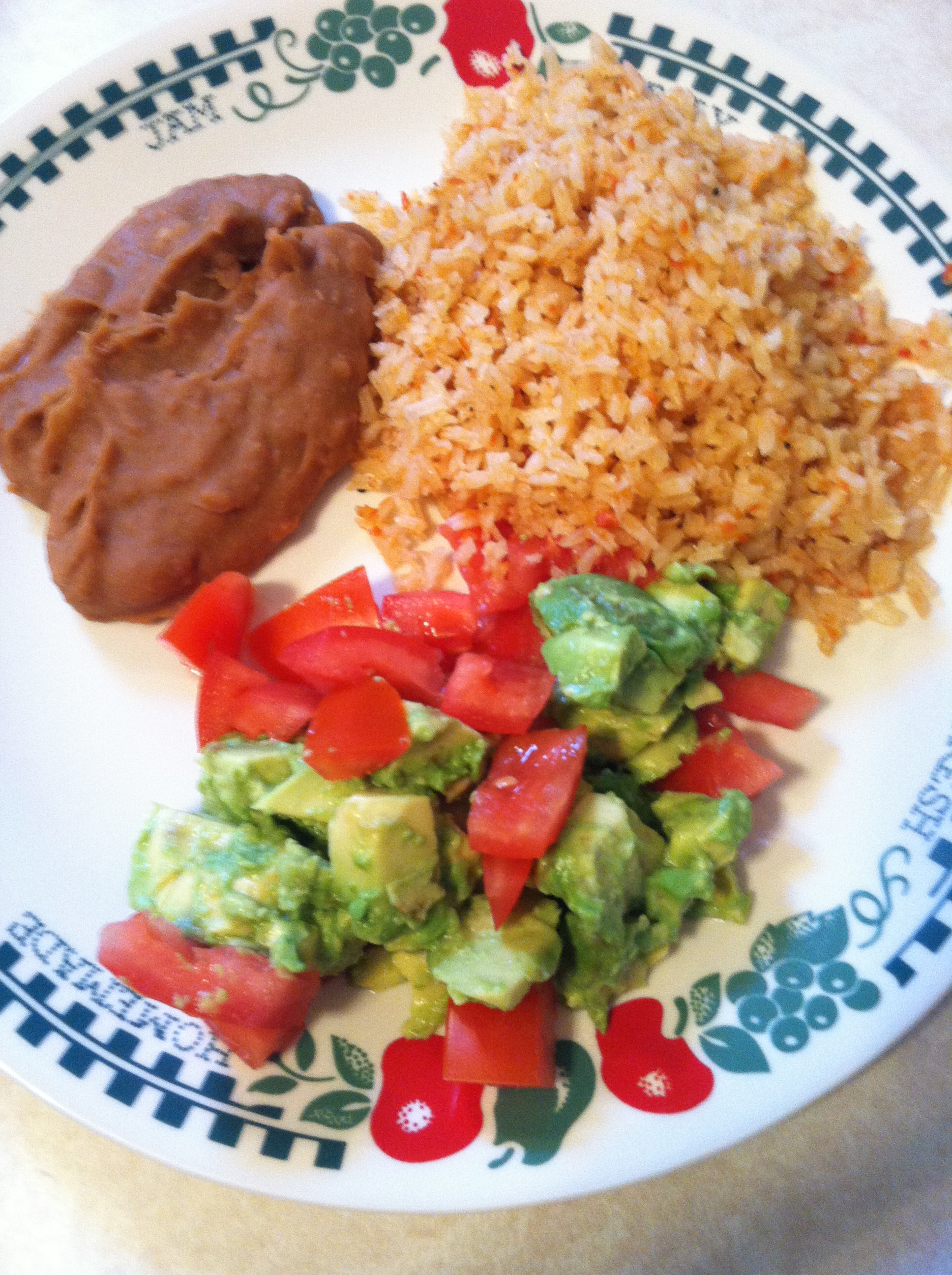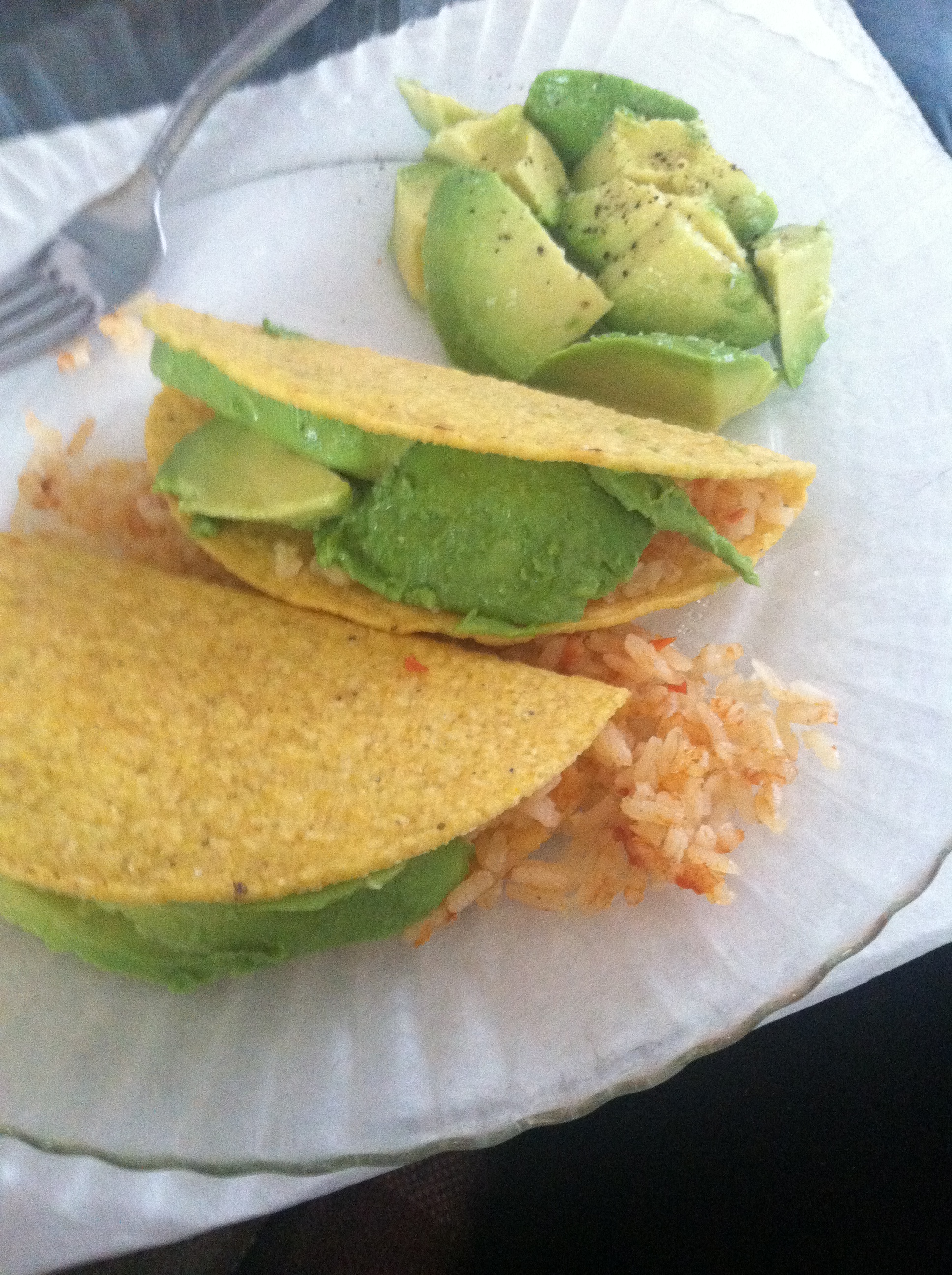 Vegan Tacos with homemade Mexican Rice and tons of Avocados