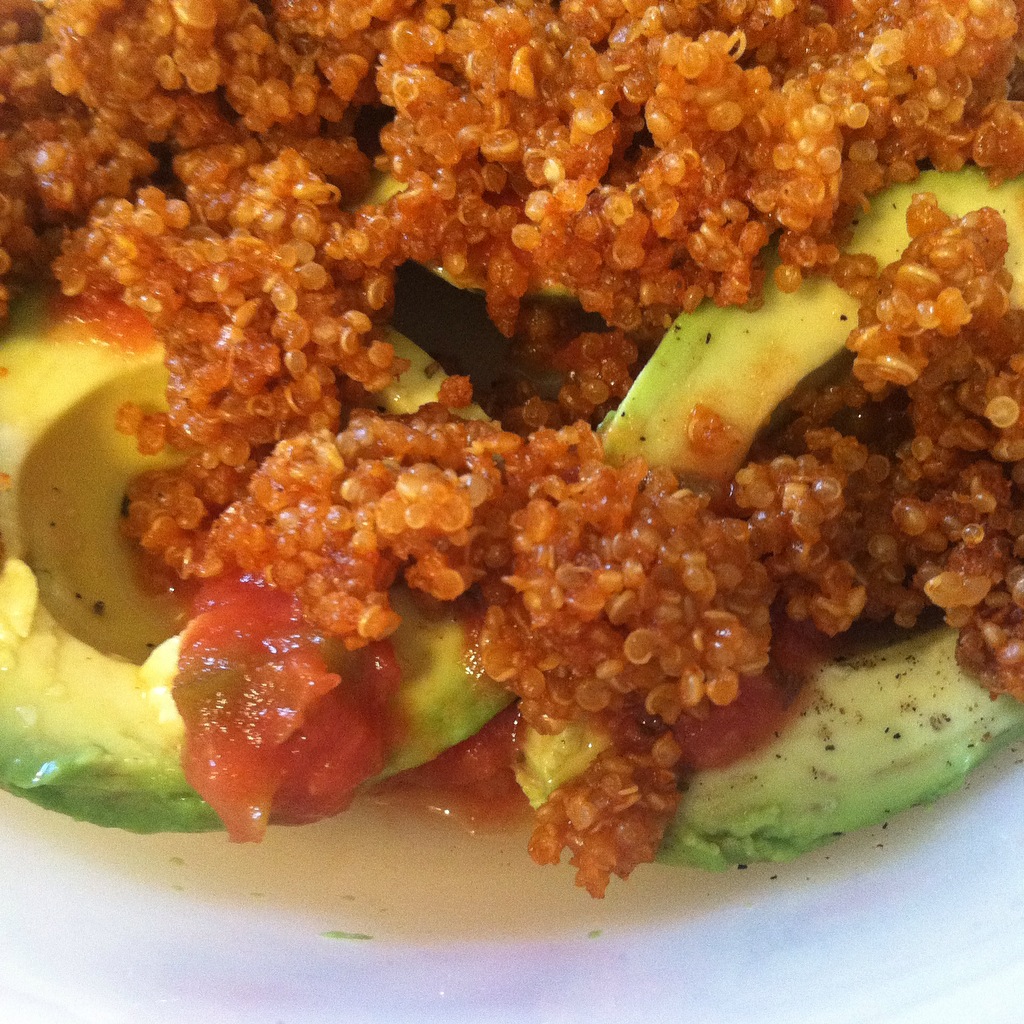 Taco seasoned Quinoa stuffed Avocados. This dish was unreal.
