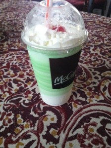 I still didn’t feel like eating much, but it was Shamrock Shake month after all.