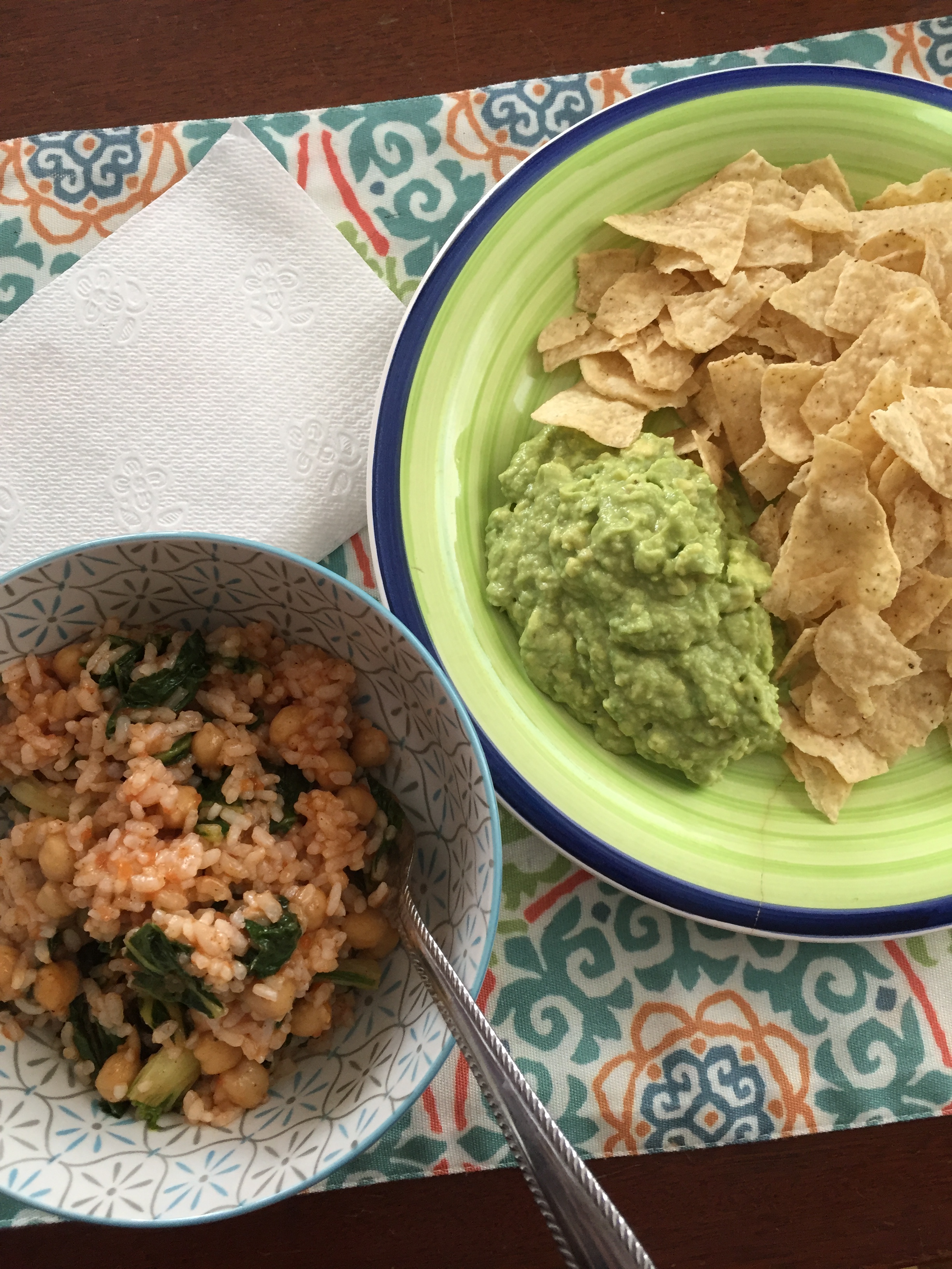 Vegan Burrito Bowl with plenty of homemade Guacamole.