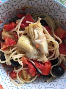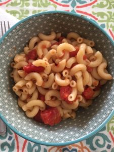 Simple Pasta with homemade tomato sauce. I made a big batch of this pasta to eat cold, and to transition into dinner.