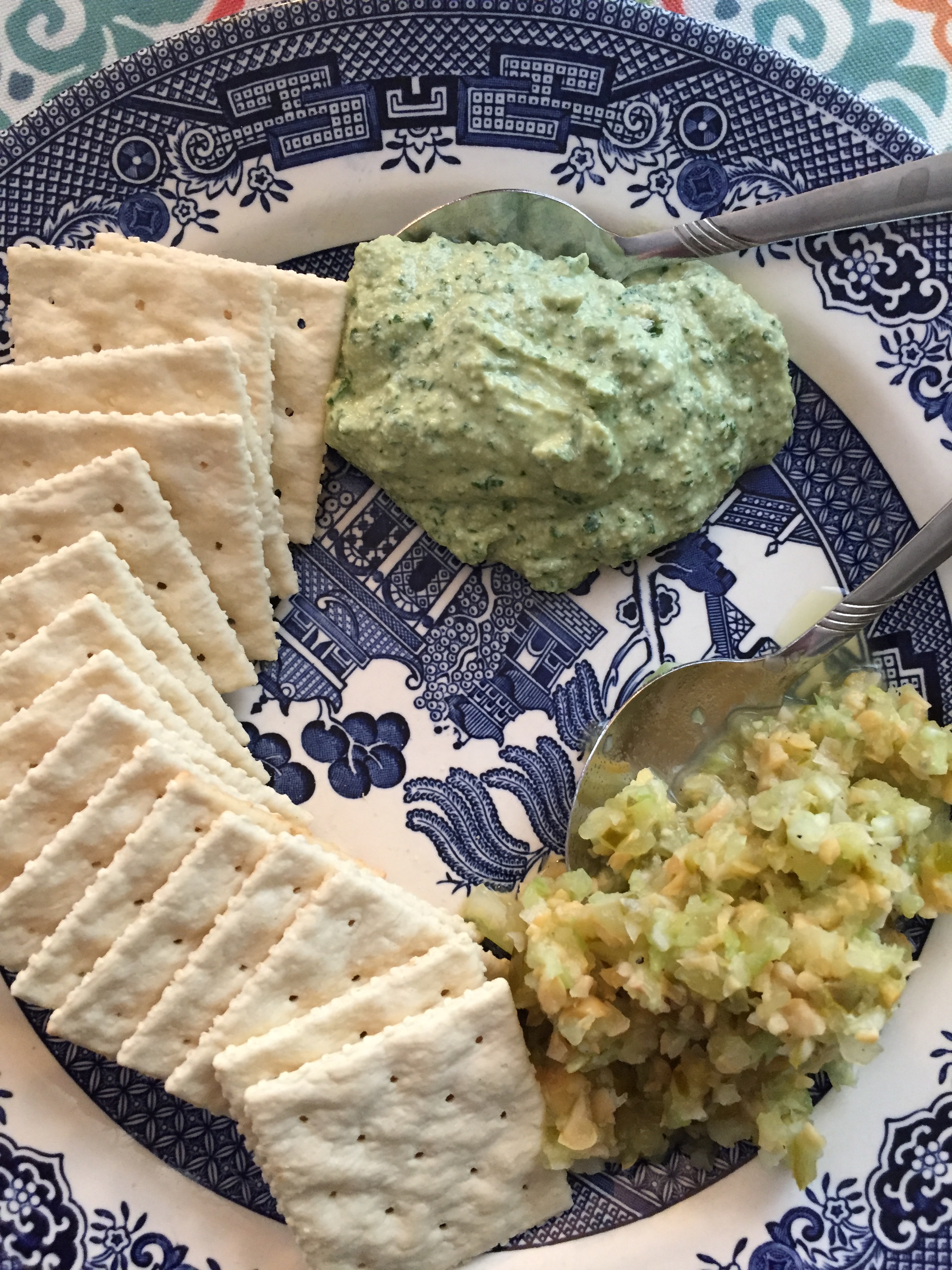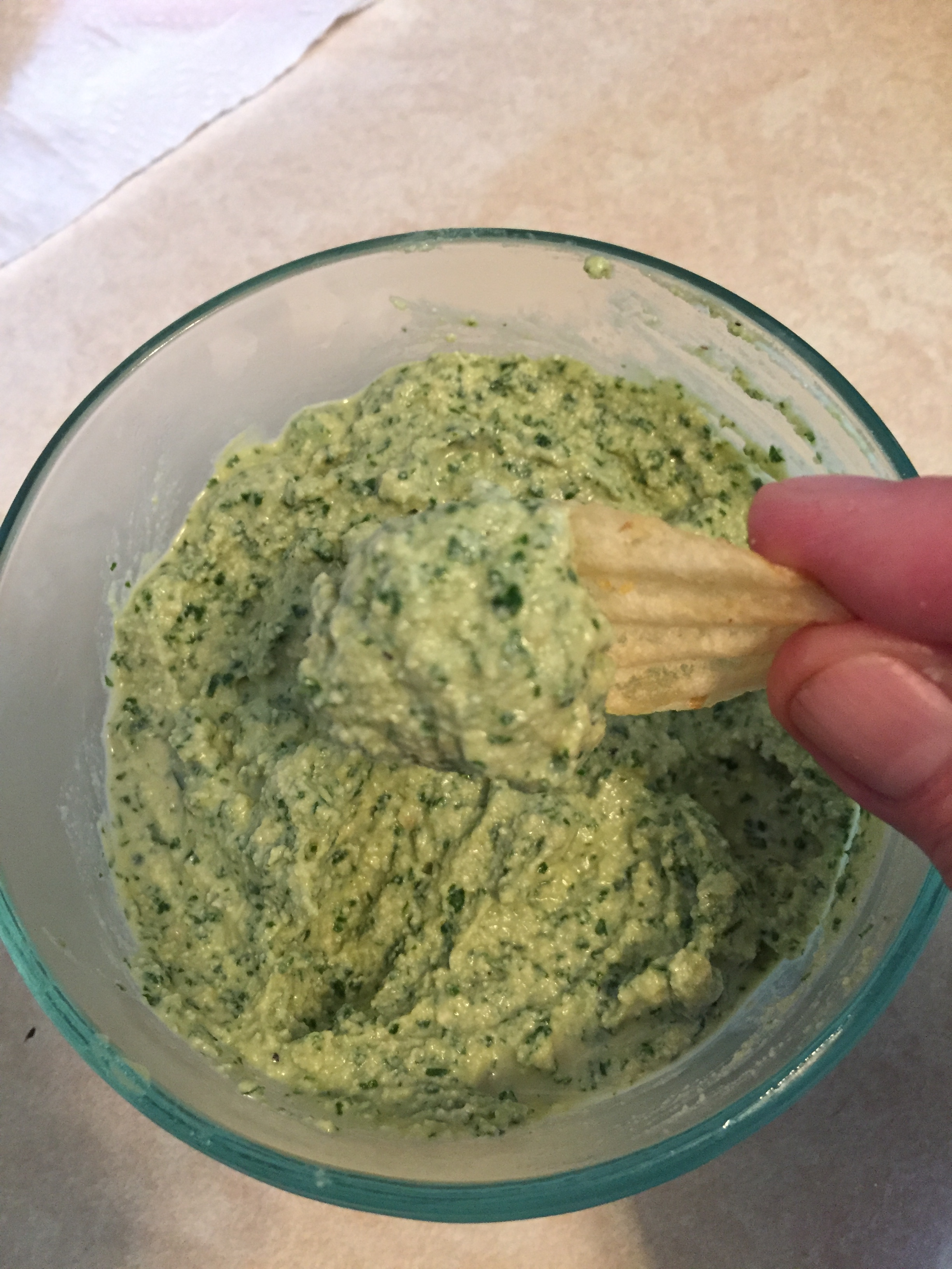 All things green for lunch. One of my kids (Dylan) will eat the Not-tuna-but-chickpea-salad, but none of the kids will touch my mean and green dip.