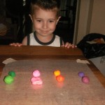 When he was all finished we rolled the Play Doh into pretty beads that we can string together for a bracelet or necklace. Thade loved this craft, and he had a blast watching the Play Doh blend into a brand new color.