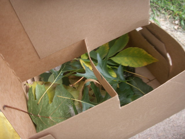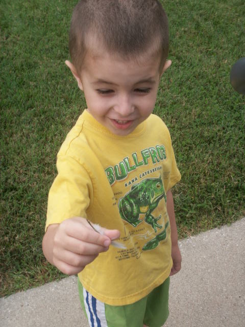 On this nature walk we were looking for leaves and feathers. I was planning on pressing leaves for a leaf book, and I think Thade found plenty.