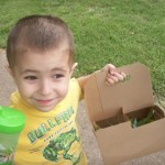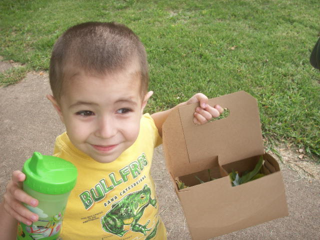 When the weather is just right, I take the boys for a Nature Walk. It is a little walk around town, and Thade carries along a tote to pick up cool nature finds. I’ve found that a drink carrier from Sonic is the perfect size for all of his treasures, and it holds up to all of the rocks that Thade picks up too.