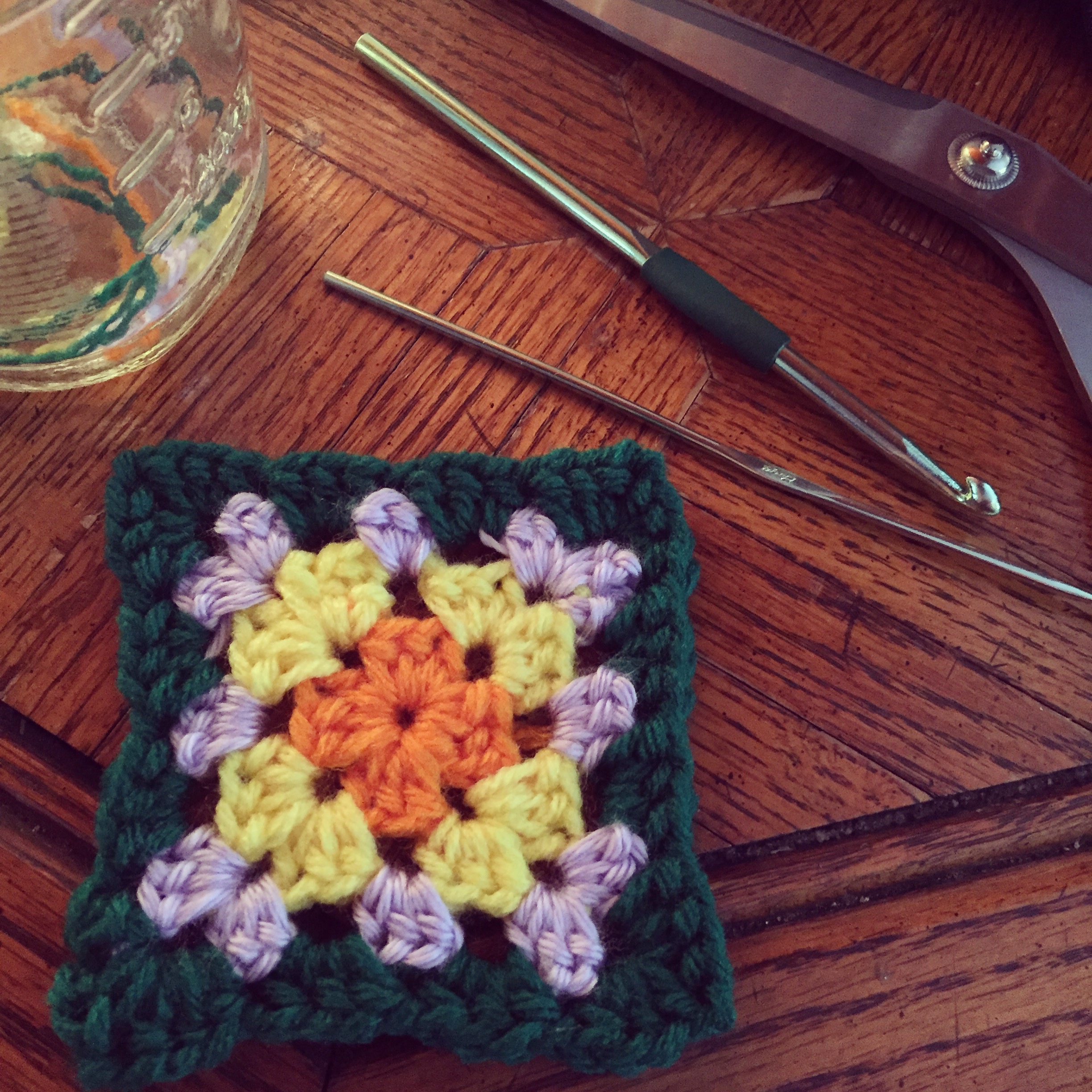I’m gathering up the scraps and crocheting granny-squares here and there.