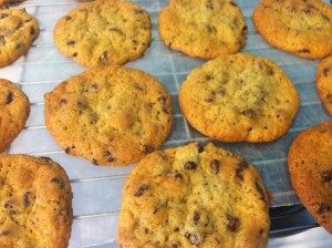 A few days later, the boys were starving, even though they had a big dinner. So I made up another batch of cookies. This time they were Chocolate Chip.