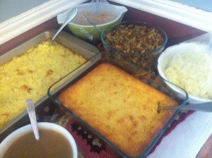 When Thanksgiving arrived, we set up a buffet in the dining room. The dishes were delicious, and everyone brought some treats to share too.