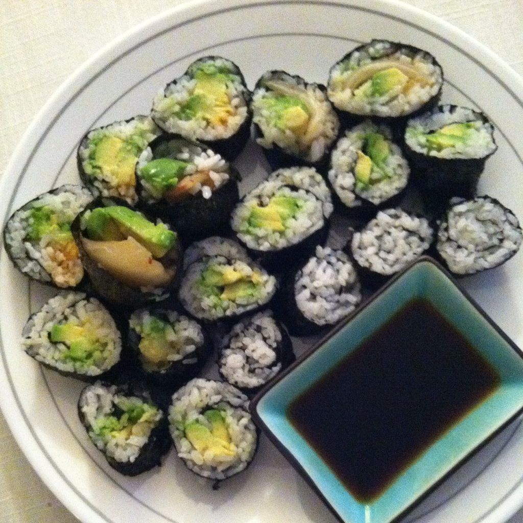 For mine I made avocado rolls (my very favorite), and kimchi and avocado rolls. Oh goodness, I think I could eat this for every single everything.