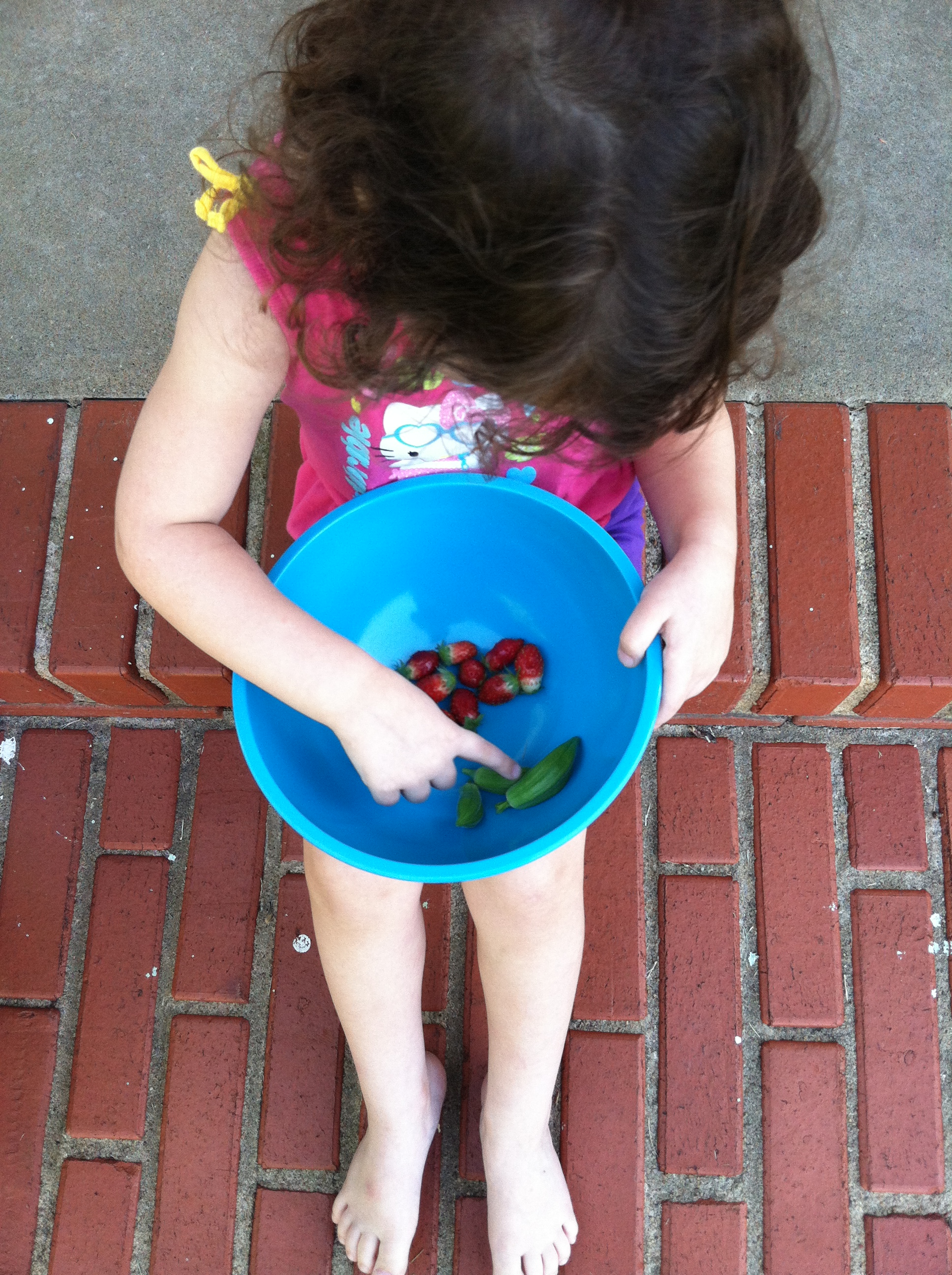 We picked a few fruits and veggies from the planters on the front porch.
