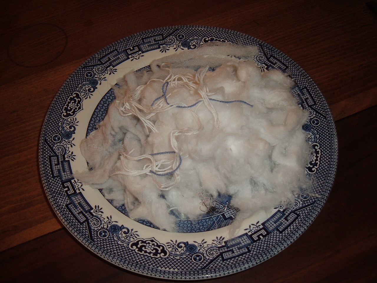 I thought it would be a fun little task to gather up a few items for the little bird and Thade could help out too. We ran through the house and gathered up strings, cotton, and anything else that would make a warm nest for those little blue eggs.