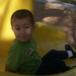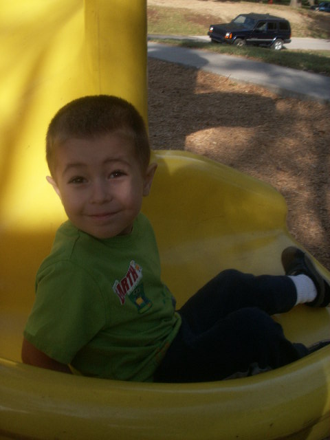 Thade was very brave and climbed the ladder on a larger Jungle Gym. He was happy to slide down the tornado slide as many times as he wanted to.