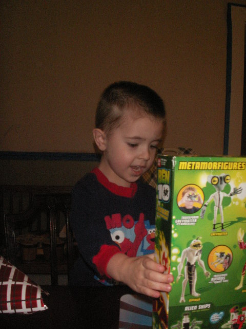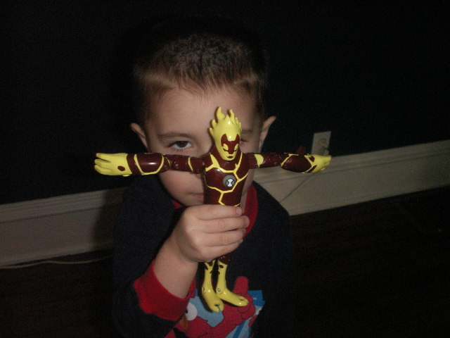 We had a little party for Thade on his birthday, and we all had so much fun! We are planning a second party with the rest of the family this weekend. Thade  got to open his presents at Breakfast, and he was thrilled to get the Ben 10 HeatBlast action figure 🙂