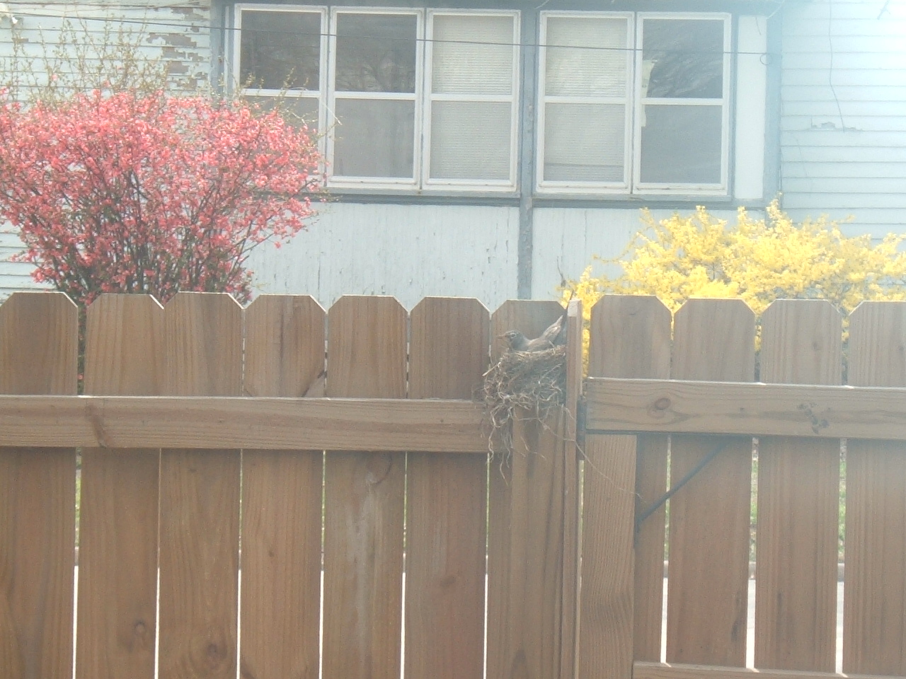 My freesia and irises are blooming now. I love tulips but it’s too warm to grow them here. What a brave little bird to build her nest on a fence post. I’m keeping my fingers crossed and praying there aren’t any kitties around there!