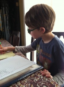 After school the boys usually bring home a bit of homework. It can been tricky to keep the Miss quiet while the boys are working.