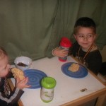 The weather is cold and rainy, and we all are stuck indoors. We decided to rent Alvin and the Chipmunks from RedBox, and I made Rice Krispies treats and Chocolate Milk for the boys. Dylan and Thade were both thrilled with the special snacks!