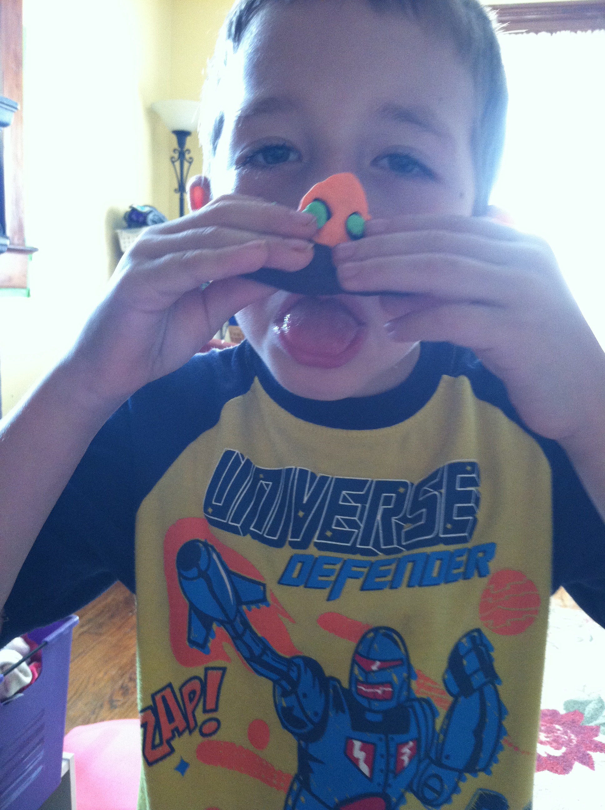 Dylan was cleverly crafting icky mustaches. Oh this little guy…