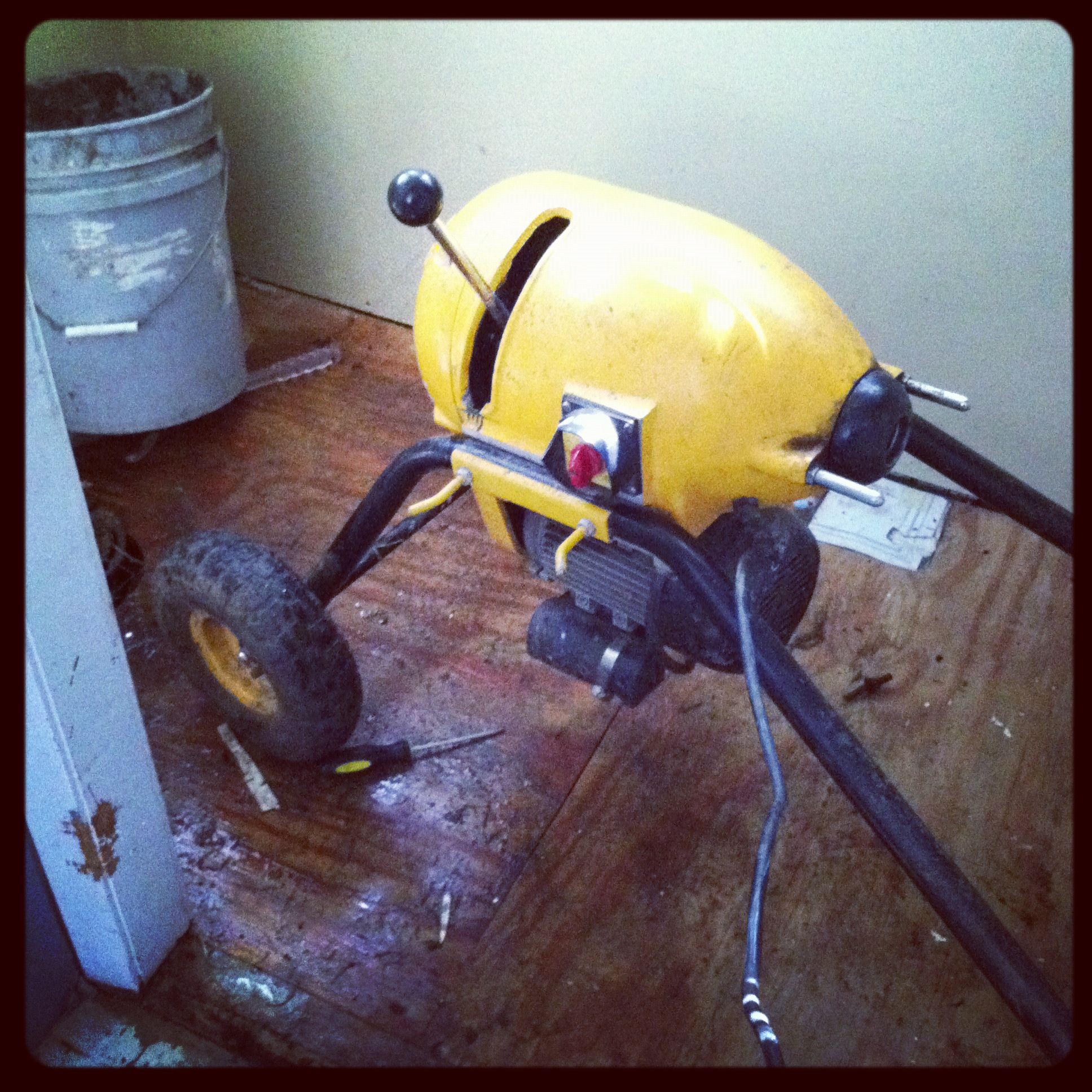 We called the plumber, and he brought out the giant auger.