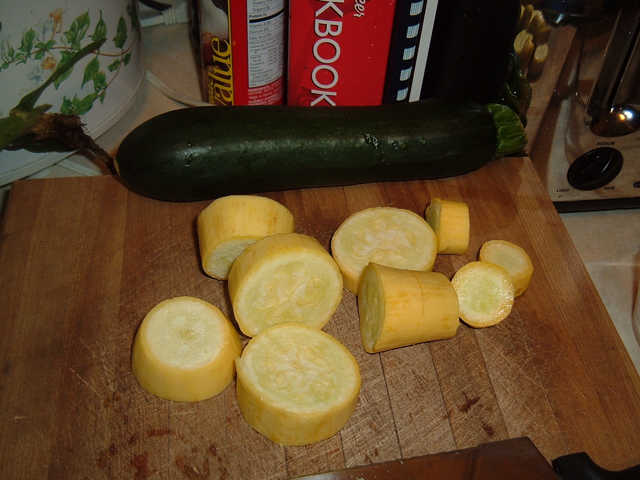 We made a snack run yesterday, and the tasty produce has made a return to the grocery store! I happily stocked up on Yellow Squash, Carrots, Zucchini, Corn, Fuji Apples, Pears, and Bananas too.