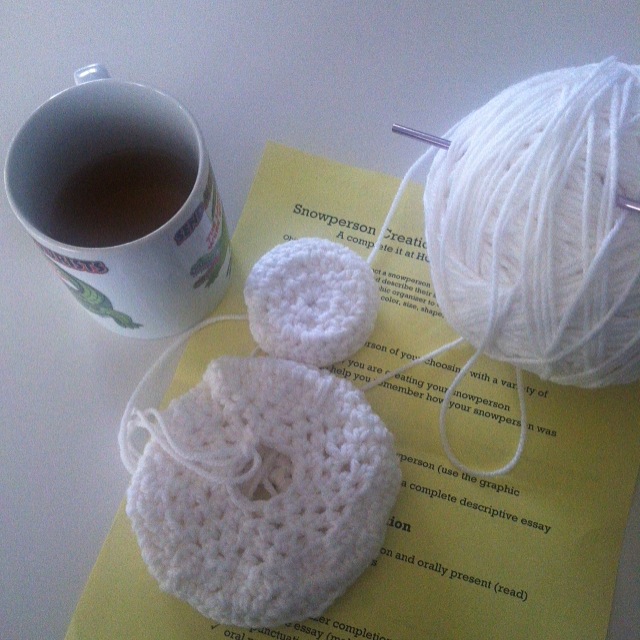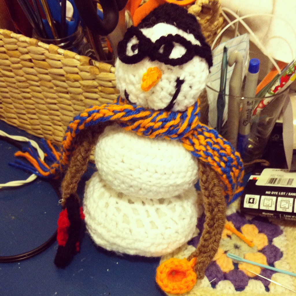 He has been learning to sew in Home Ec. , so he helped out a lot with the snowman project.