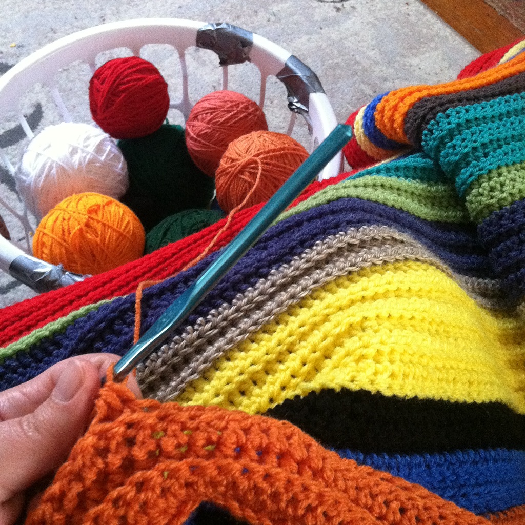 Agnes is still on her accessories kick. I’ve been making her lots of little headbands, and I’m also crocheting a new blanket for Thade.