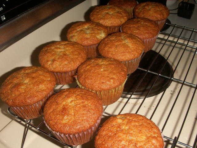 pict0003.JPGbanana-bread.JPG I had these cute mini loaf pans for way too long, and I had no idea what to do with them. Today I decided to whip up a double batch of banana muffins, and attempt to bake some banana bread as well. I made double of everything so I have some to enjoy for now, and some to go in to the freezer to enjoy later. The whole house smells like yummy banana muffins.