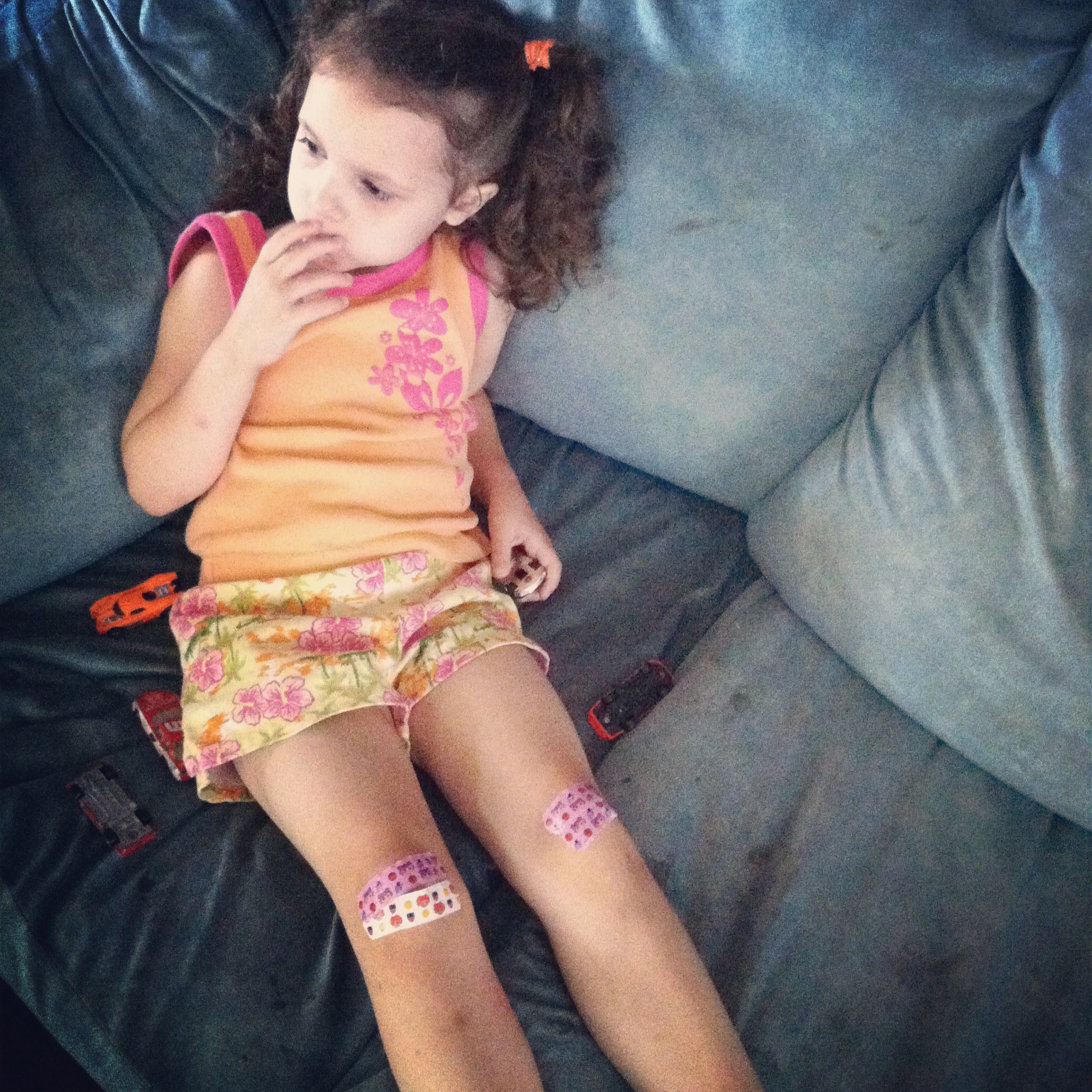 Miss Agnes wiped out on the sidewalk and scraped both knees.