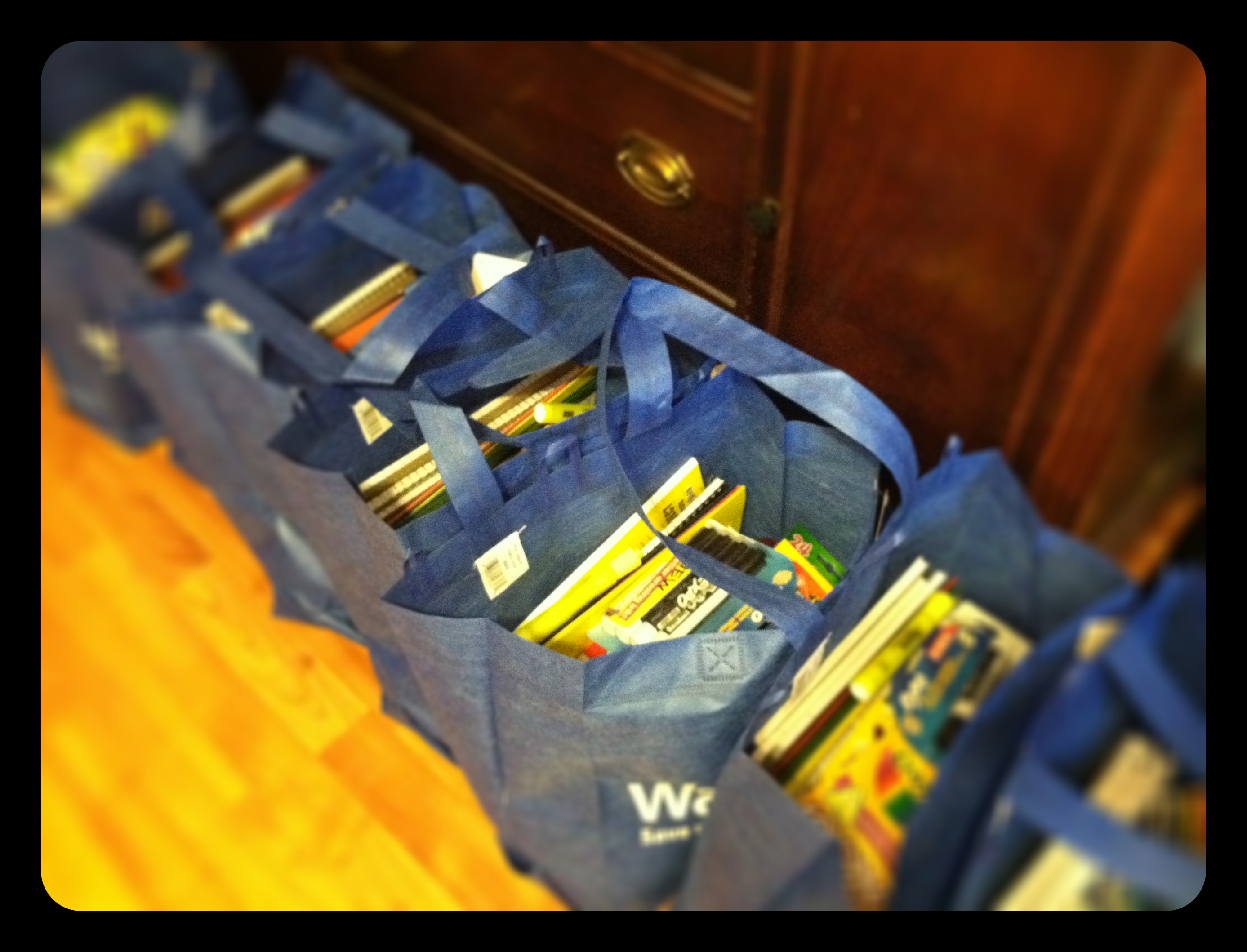 Tuesday afternoon the kiddos and I went to Thade’s best buddy’s house for a play-date. I got to help put together back to school supply packs with his best buddy’s momma. It was a lot of fun, and I have never seen so many school supplies.