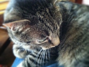 The kitty was happy to hang out with me, and he even curled up on my lap for a bit, but then he spotted…