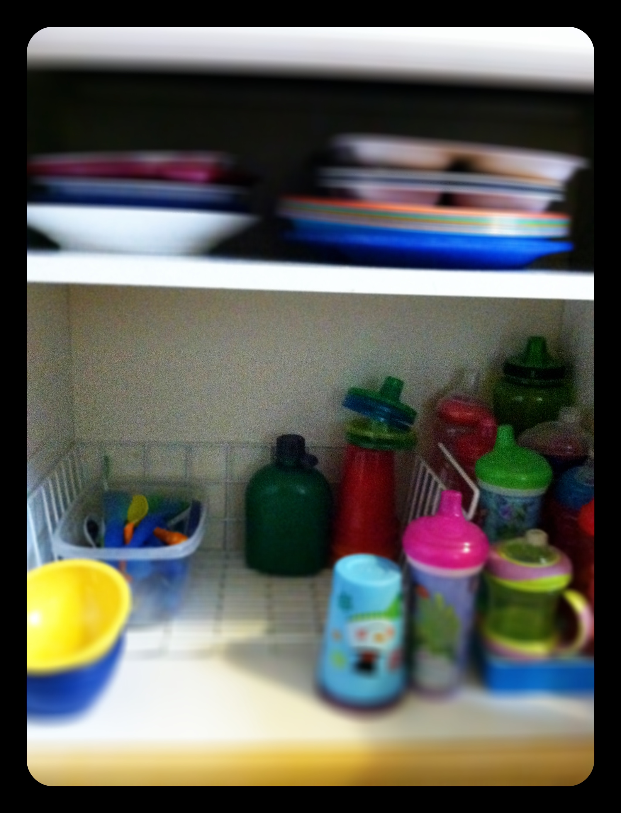 We finally got a little rain, and the kiddos slept in a bit thanks to the thunderstorm. James was going to be working open to close, and we didn’t have any plans or errands. I decided it was time to clean up the kitchen cabinets again, and see if I can make some room for my Pyrex dishes.