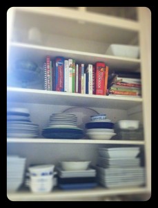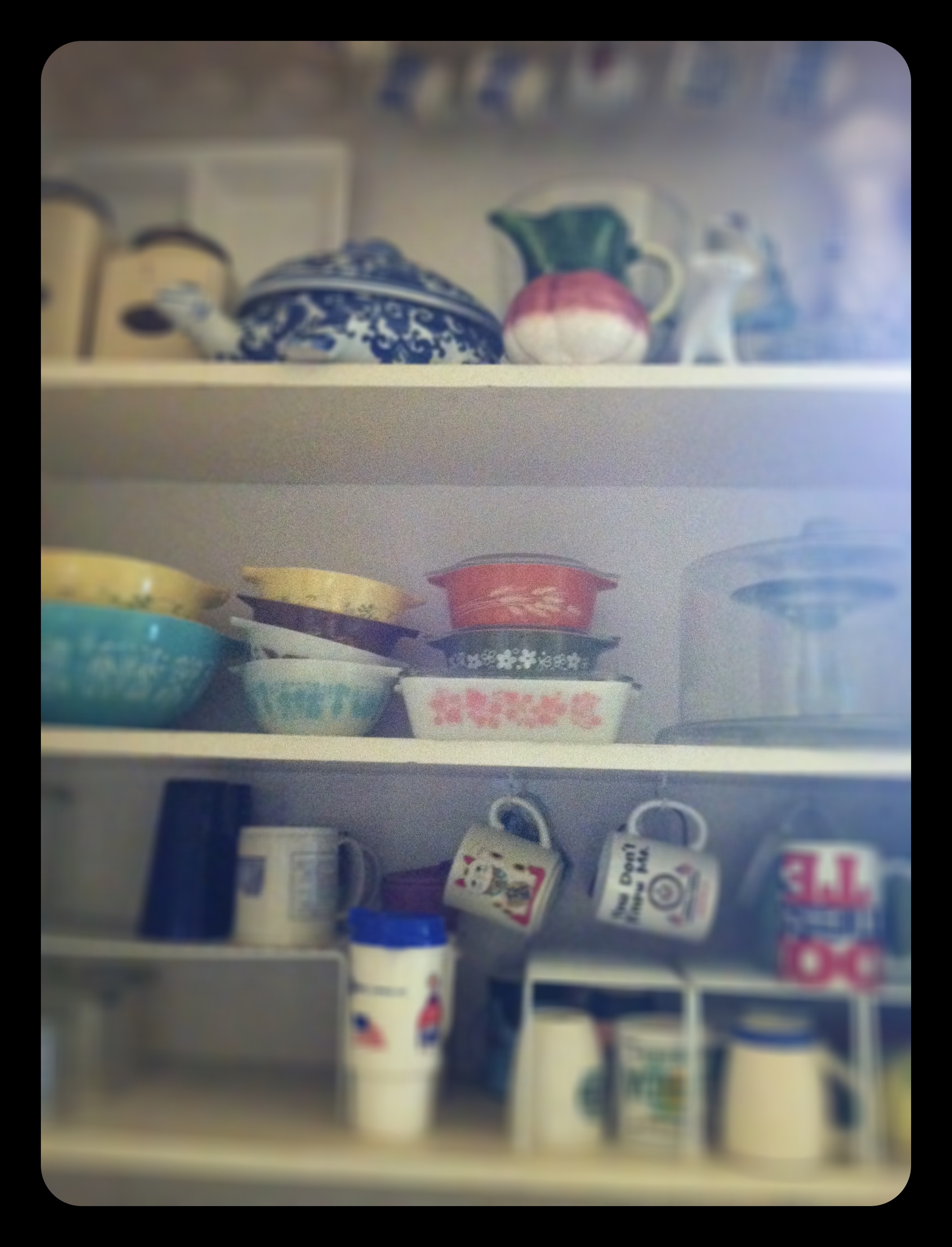 The new rearrangement freed up a little space on another kitchen shelf. Now I’ve got room to stash a few more bowls if I come across one.