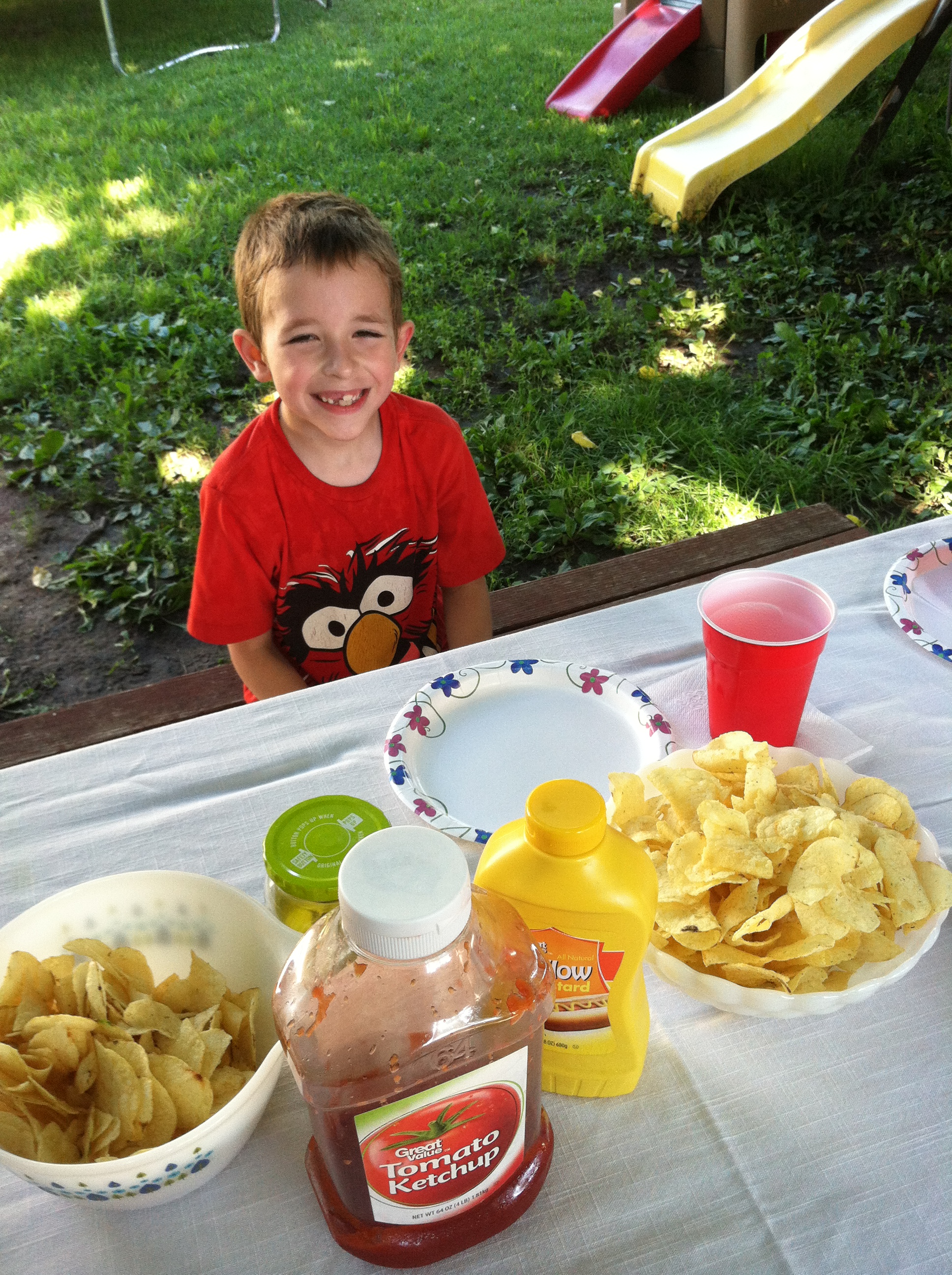 James took over the grilling, and I set the picnic table.