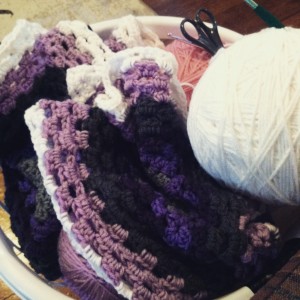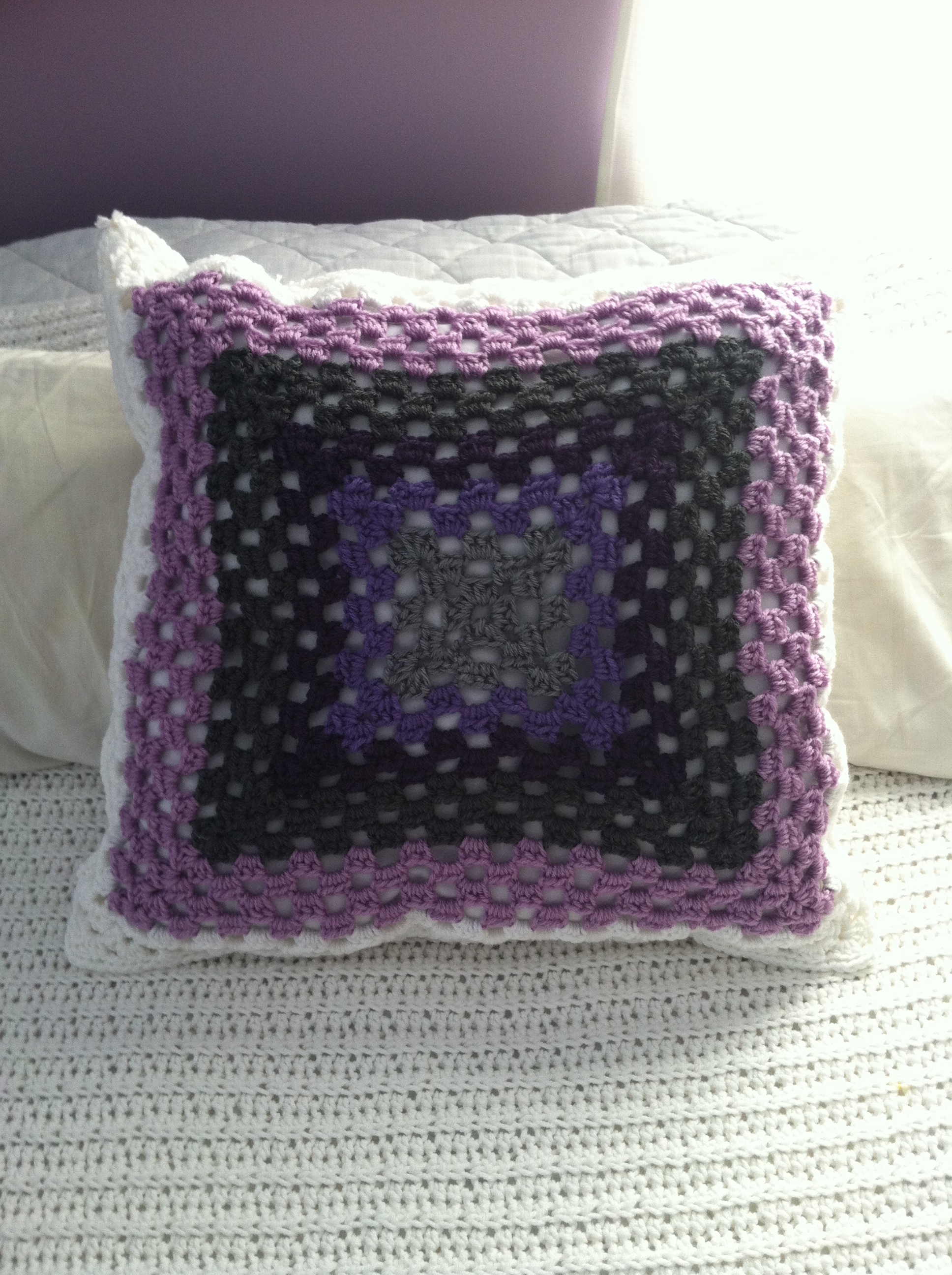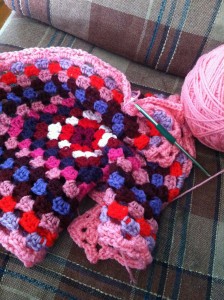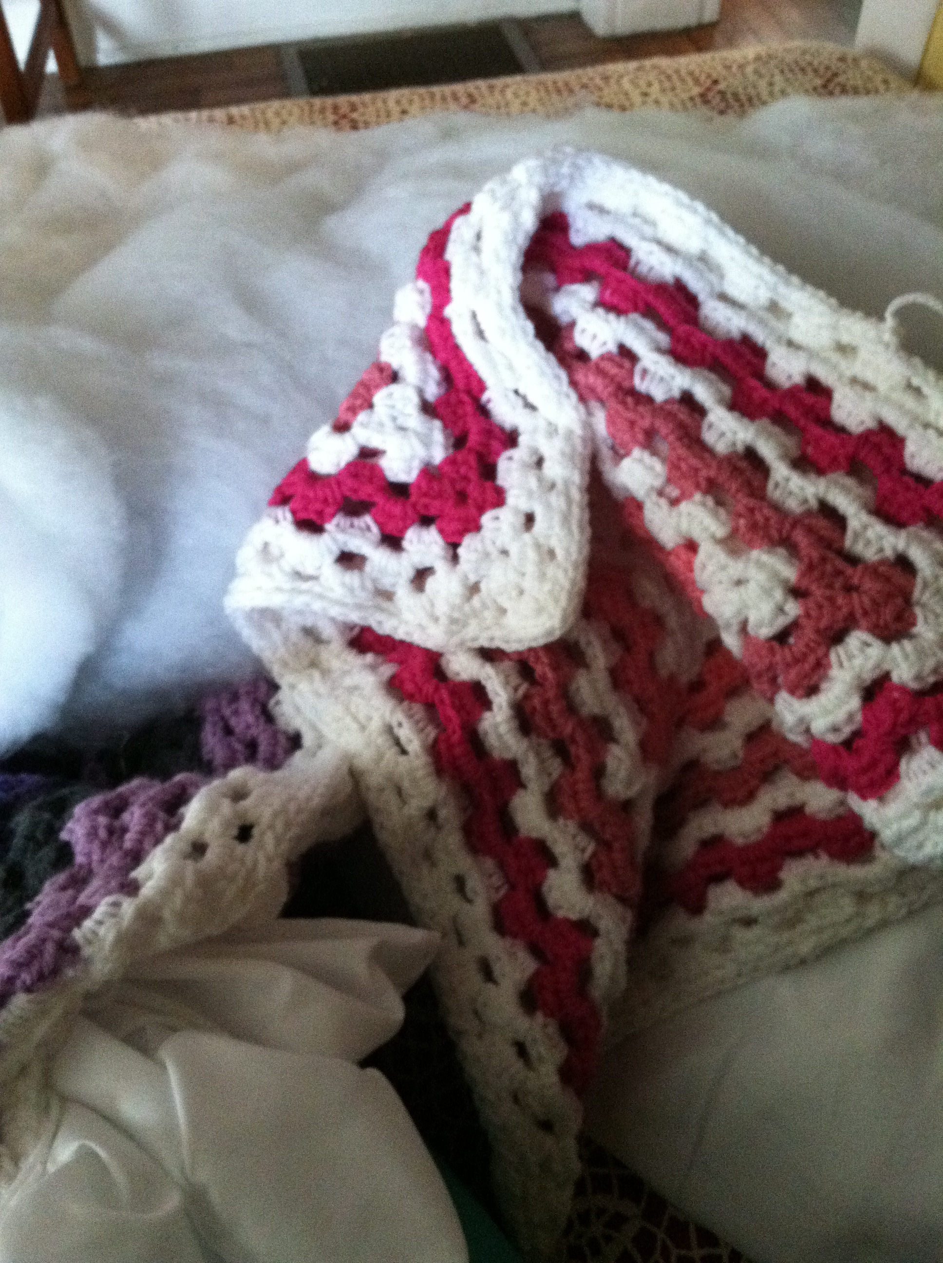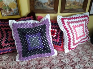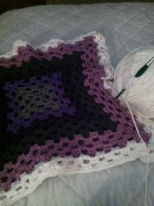 I decided on making giant granny-squares. They are easy to crochet, and duplicate.