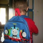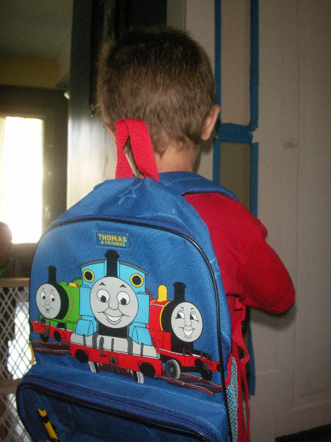 How I adore backpacks. I had my very favorite backpack in High School, and I took it everywhere. It was a simple solid color, that I found at Office Max, and I decorated it with my favorite patches and pins. My backpack was obsessively organized, half for schoolwork, and half filled with my gear for shows. I even carried my beloved backpack to my second job. I was commuting twice daily, so I needed work items and after work items, and my backpack followed along. I haven’t seen my backpack since our second move, so I have no idea where it is today, but seeing Thade’s first backpack brings back happy memories of mine.
