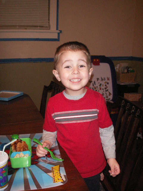 The traditional Bento meals have Rice, Fish or Meat, and Vegetables. I’ve been serving Thade the same meal that we are having only in a smaller portion in the Bento kit, and meal time is now more fun for him 🙂
